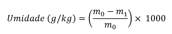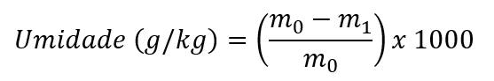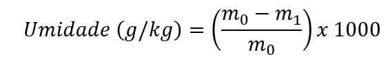 onde Uma = umidade (em g/kg) da amostra antes da moagem (determinada de acordo com o item B.10.1.4 deste manual); Umd = umidade (em g/kg) da amostra após a moagem (determinada de acordo com o item B.10.1.4 deste manual).