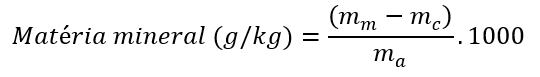 Expressar os resultados obtidos para umidade, fibra bruta, gordura total, matéria mineral e proteína bruta em “g/kg” e uma casa decimal.