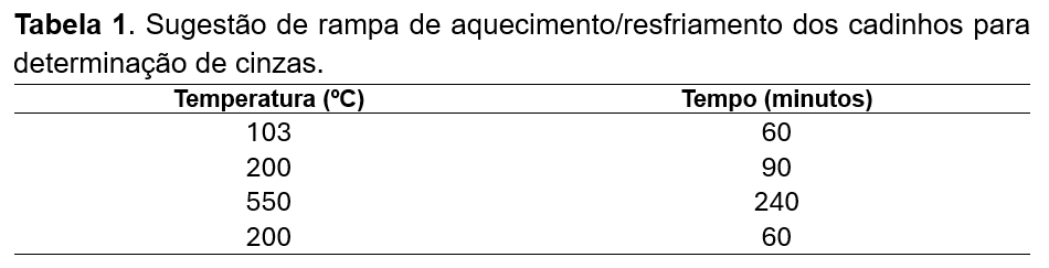 Tarar os cadinhos levando-os ao forno mufla por 30 minutos a 600 ºC.