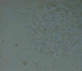 FIGURA 2 – Cultivo de células VERO sem ECP (2B) e com a presença de ECP (2A) causado pelo vírus da Estomatite vesicular.